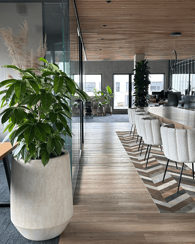 La végétalisation des bureaux a été pensée comme un fil conducteur esthétique. Pour cela, POUSSE a sélectionné des plantes artificielles et stabilisées de haute qualité, choisies pour leur rendu naturel et leur facilité d’entretien.