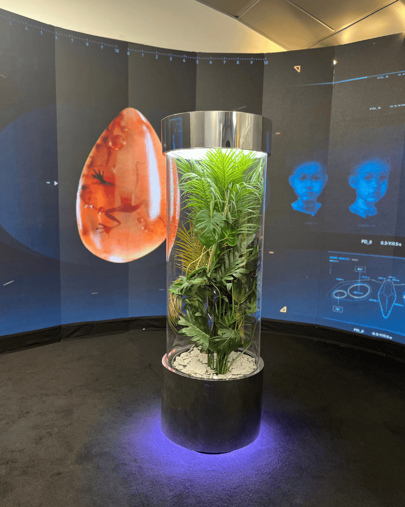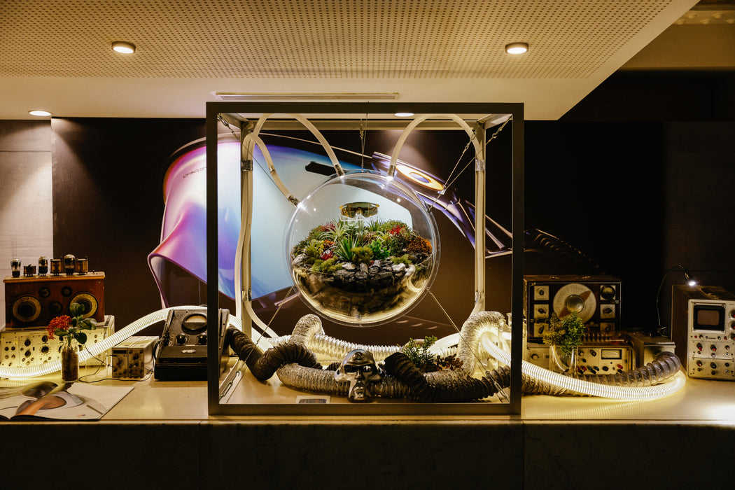 Chaque détail – du choix des mousses au placement des plantes – a été pensé pour amplifier le sentiment d’étrangeté et de découverte, en cohérence avec le concept d’« exoplanète ».