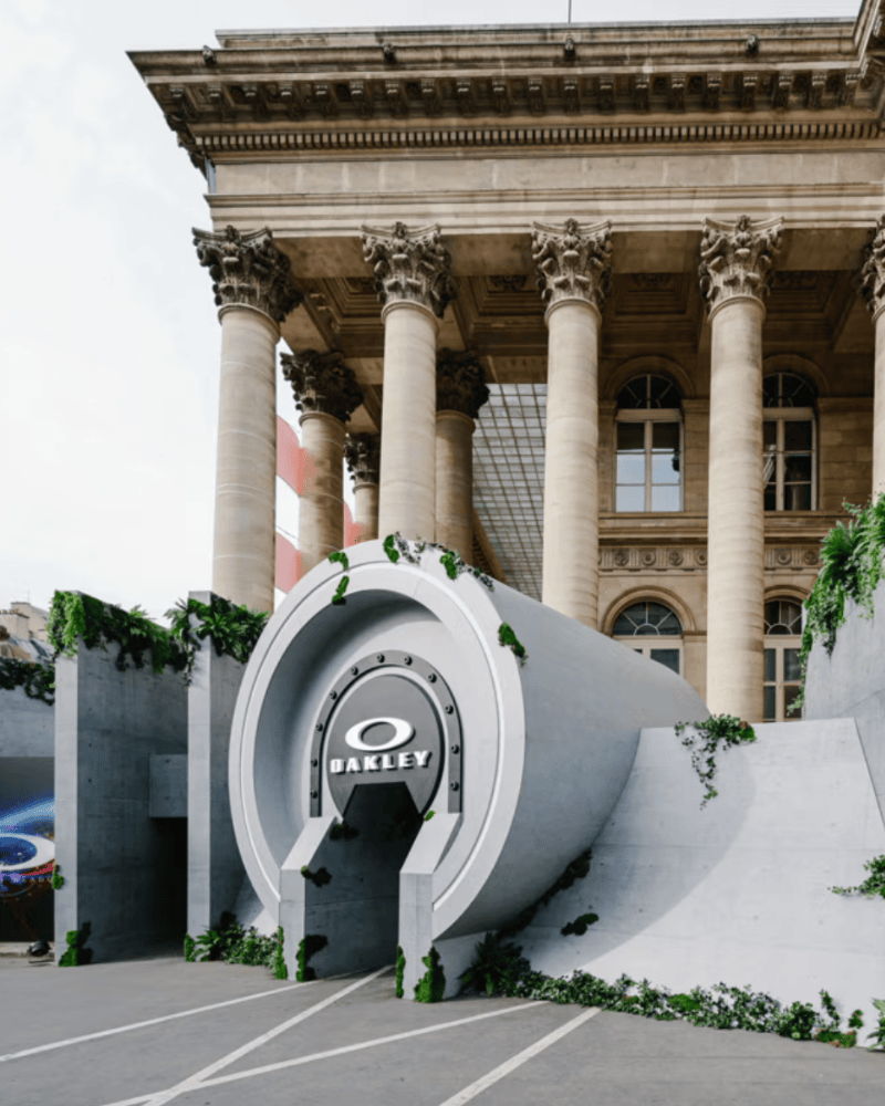 À l’occasion des Jeux de Paris 2024, la marque de lunettes de soleil Oakley a souhaité frapper fort avec une installation événementielle inédite : l’Exoplanetary Bunker, un espace temporaire installé devant le Palais Brongniart. Inspiré par l’architecture brutaliste, ce lieu avait pour vocation d’accueillir les athlètes sponsorisés par la marque ainsi que des invités privilégiés lors des JO 2024 à Paris.