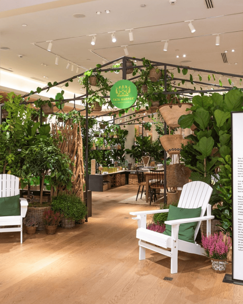A l’occasion de leur arrivée en France, la marque Tata Harper a fait appel à POUSSE pour réaliser la végétalisation de son corner exclusif au Bon Marché Paris.