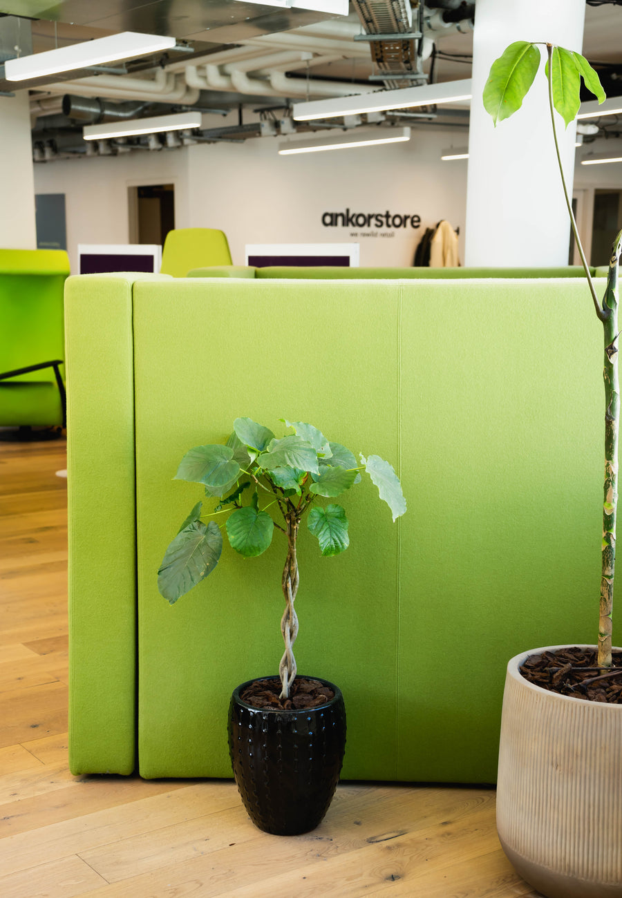 Lors de la première rencontre avec POUSSE, les locaux n’étaient pas encore occupés : le mobilier venait tout juste d’être livré, mais l’espace manquait d’âme et surtout de végétation. L’objectif confié à POUSSE était donc clair : apporter une dimension chaleureuse, conviviale et respectueuse de l’environnement à travers une végétalisation cohérente avec l’esprit d’Ankorstore.