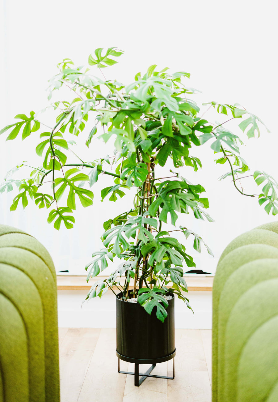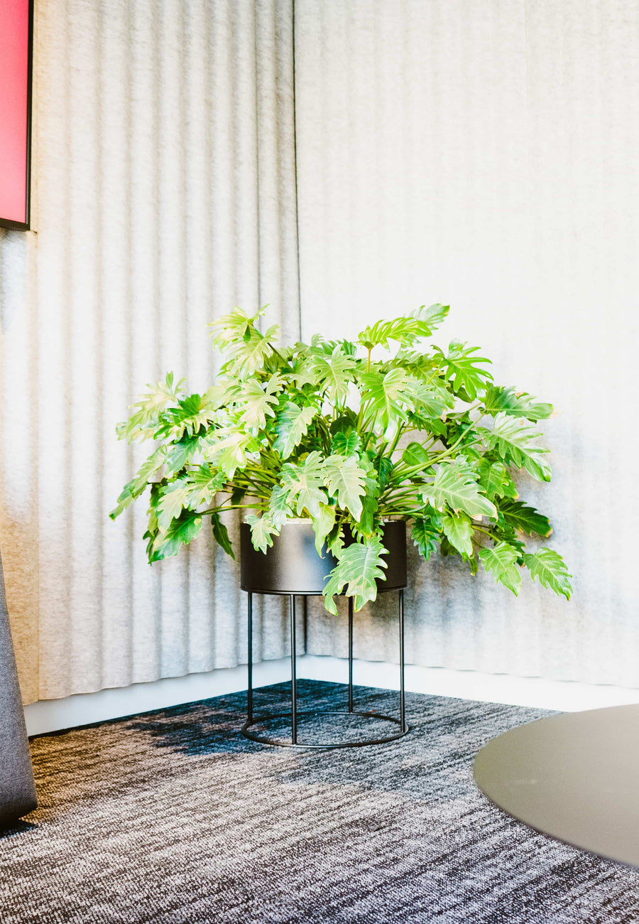 L’idée centrale : transformer les plantes en véritables éléments graphiques et décoratifs. Associées à des contenants en matières naturelles, elles devaient adoucir la rigueur des surfaces existantes tout en introduisant rythme, couleur et texture. Plus qu’un habillage, il s’agissait de donner une identité forte et chaleureuse aux espaces de travail.