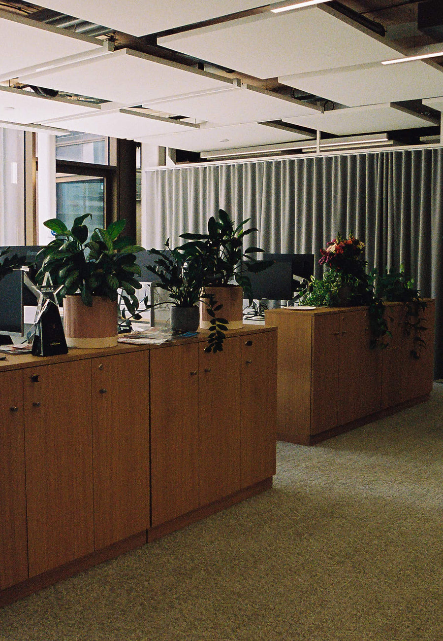 La végétalisation a été pensée sur mesure pour chaque entité du campus, selon la luminosité, la typologie des espaces (zones calmes, collaboratives, de passage) et les contraintes de circulation. Les plantes ont été disposées par modules, permettant de rythmer les plateaux tout en préservant la fluidité et la fonctionnalité des bureaux.
