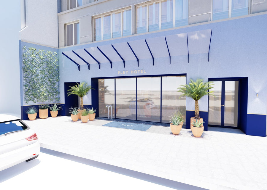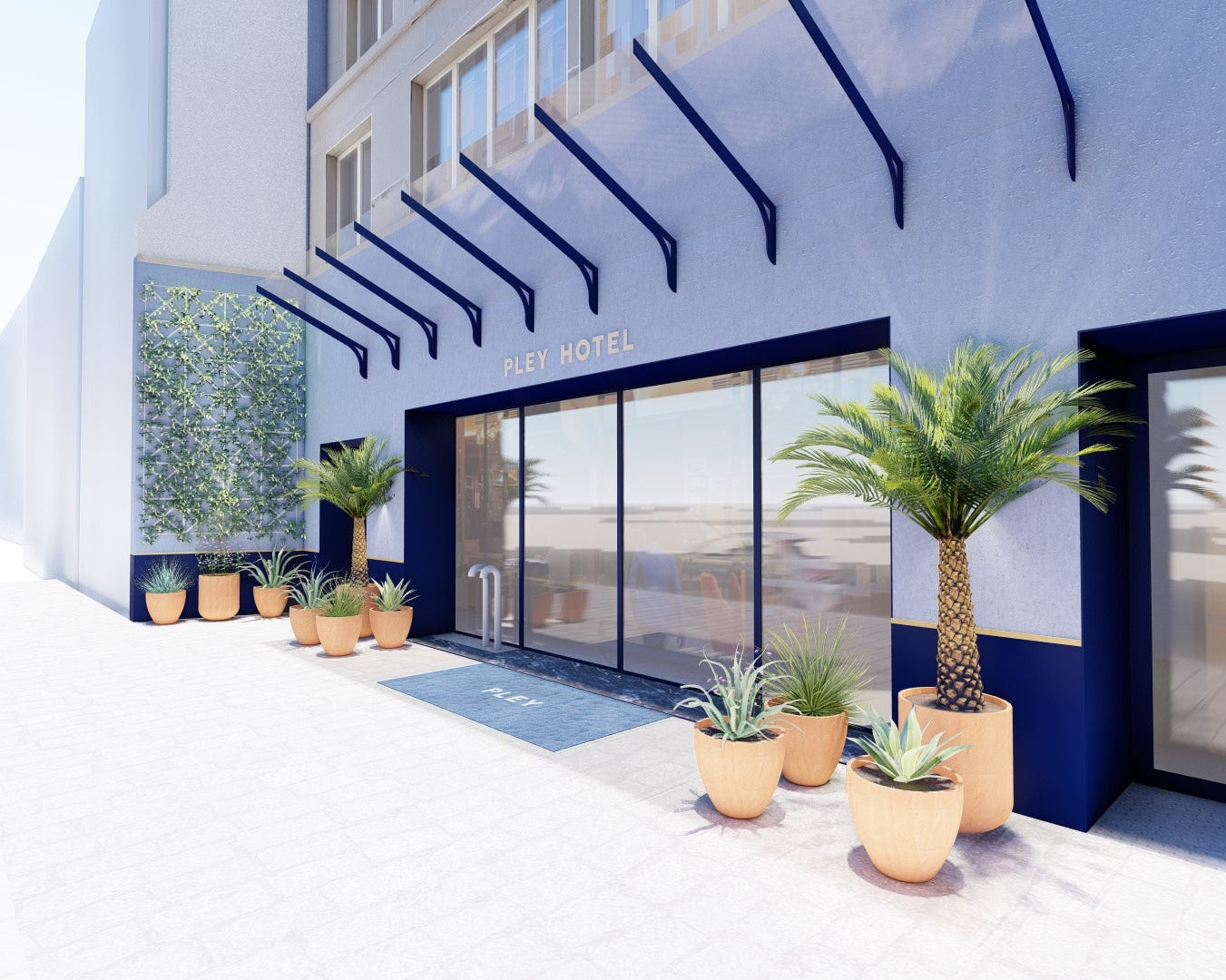 Grâce à cette intervention, l’entrée du Pley Hotel est devenue un véritable repère visuel :